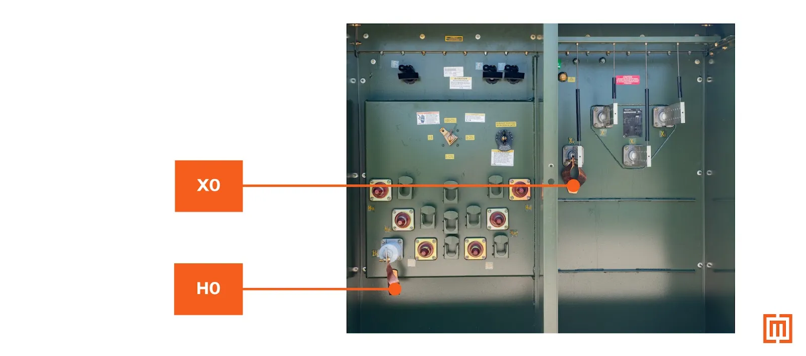 A separate H0 and X0 configuration provides a separate H0 bushing with a ground strap with the primary terminals. This configuration also allows for a common solidly grounded neutral as well, via the bond strap connection at the tank wall between the H0 and X0 terminals. This also results in the H0 terminal having its BIL limited by the low voltage winding BIL.