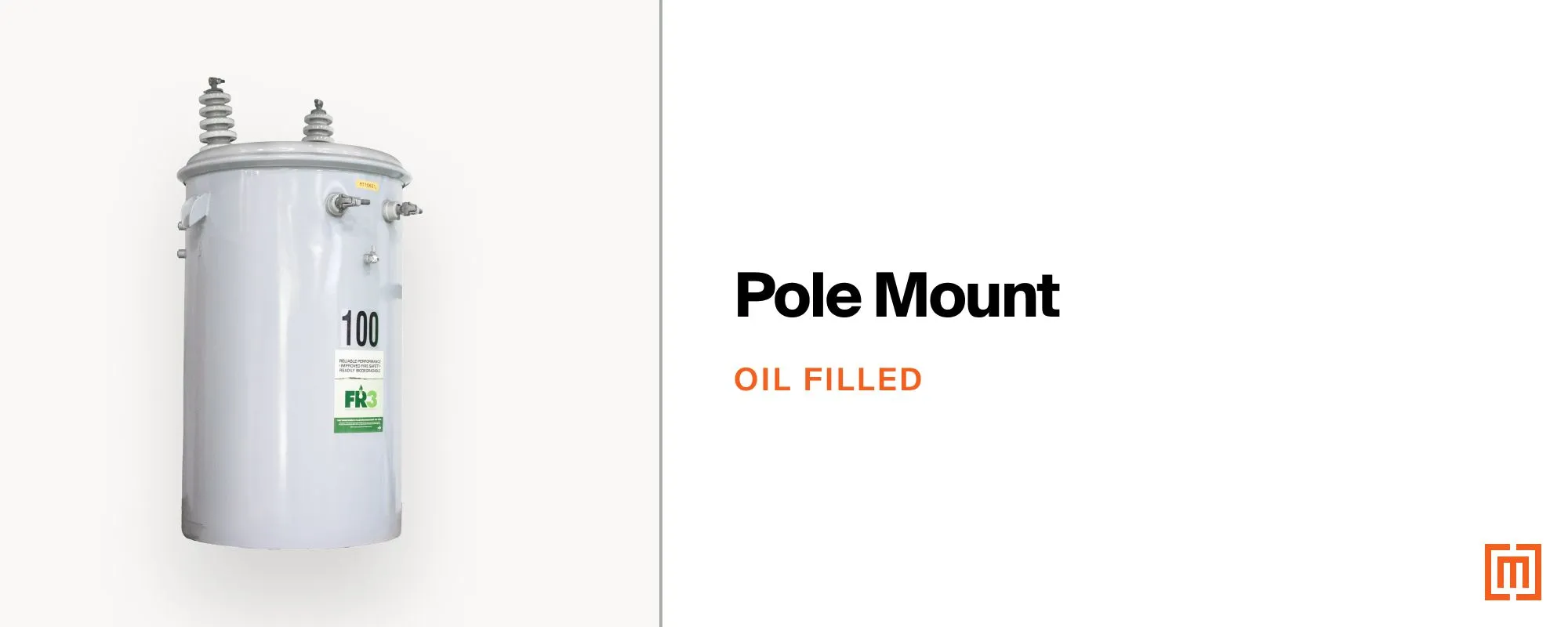 Pole mount transformers, as their name suggests, are transformers mounted on high electrical-grade poles for power distribution. Because they’re typically built as single-phase units, they’re often found in residential areas where power is stepped down for household use. They can also be banked together in groups of three for three-phase applications in larger commercial and industrial areas. In recent years, single-phase pole mounts have been passed over for units that utilize underground distribution lines, such as smaller single-phase padmounts.